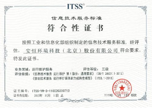 近日,安恒集团获得 ITSS运行维护服务领域的信息技术服务标准符合性证书,这是安恒继获得软件能力成熟度CMMI评价证书、ISO20000信息技术服务管理体系等认证后,在信息技术服务质量管理体系建设发展中完成的又*次进阶。至此,安恒的IT服务从开发设计、服务运营、持续改进到监督管理的全生命周期均已实现高成熟度的标准化质量管理,由此产生的价值将逐步体现在为客户提供的服务中。